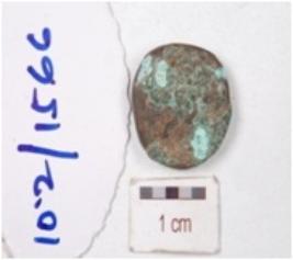 | Description / विवरण | A die struck copper coin, circular in shape, unreadable motif and eroded surface. |