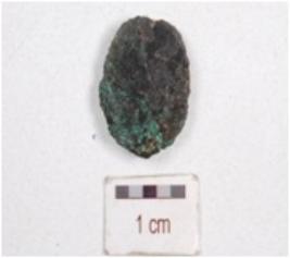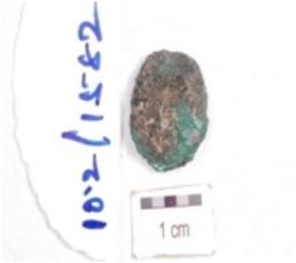 | Description / विवरण | A copper coin, circular in shape and corroded surface. |