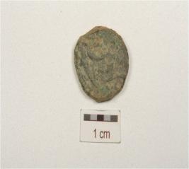 | Description / विवरण | A copper coin, round in shape, arabic inseription on obverse and weathered reverse side. |