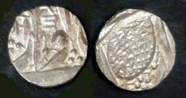 | Description / विवरण | Descrpn./Obv In the centre, a chhatra with Sa and Ta in Gurumukhi script on the left and right of its shaft; traces of the Persian legend seen on the obverse of the bigger Nanakshahi coins of Amritsar mint are also seen. Descrpn./Rev Big peepal leaf and traces of the Persian legend seen on the reverse of the bigger Nanakshahi coins of Amiritsar mint - Shri Amritsarjiv zarb [VS Year] Takht maimanat julus manus Akal Bakht. Especially traces of alif of Akal and te of Takht and maimanat are seen |