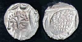 | Description / विवरण | Descrpn./Obv In the centre, a chhatra with Sa and Ta in Gurumukhi script on the left and right of its shaft; traces of the Persian legend seen on the obverse of the bigger Nanakshahi coins of Amritsar mint are also seen. Descrpn./Rev Big peepal leaf and traces of the Persian legend seen on the reverse of the bigger Nanakshahi coins of Amiritsar mint - Shri Amritsarjiv zarb [VS Year] Takht maimanat julus manus Akal Bakht. Especially traces of alif of Akal and te of Takht and maimanat are seen |