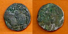 | Description / विवरण | Descrpn./Obv Recumbent bull facing left, wearing jhula (saddle cloth), with trisula (trident) symbol on rump. Above, legend in Sarada script Sri Samantadeva . Descrpn./Rev Rider with lance on caparisoned horse facing right. On left, Sarada letter bhi and on right, Sarada letter ta |