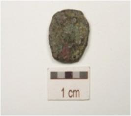 | Description / विवरण | A circular coin made of lead, heavily weathered, legend on reverse symbol on obverse not visible clearly. |