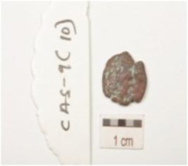 | Description / विवरण | A copper coin, irregular and weathered edges, heavily corroded, symbols not visible clearly on either side. |