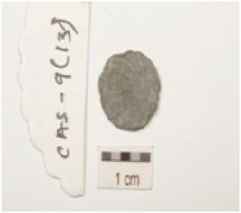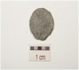| Description / विवरण | A circular coin made of lead and heavily weathered. |