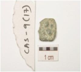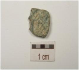 | Description / विवरण | A rectangular copper coin, heavily corroded, broken from one end, symbols and legend not visible. |