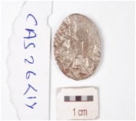 | Description / विवरण | A silver coin, circular in shape and having indeterminate motif on both surface. |