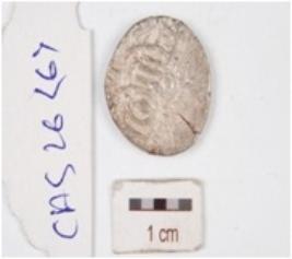| Description / विवरण | A silver coin, circular in shape and having indeterminate motif on both surface. |