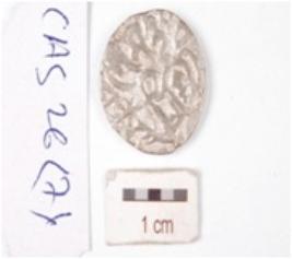 | Description / विवरण | A silver coin, circular in shape and having indeterminate, motif on both surface. |