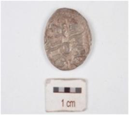 | Description / विवरण | A silver coin, circular in shape and having indeterminate motif on both surface. |