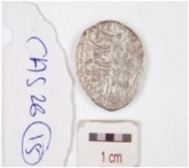 | Description / विवरण | A silver coin, circular in shape and having indeterminate motif on both surface. |