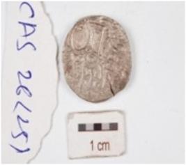 | Description / विवरण | A silver coin, circular in shape having indeterminate motif on both surface. |