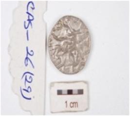 | Description / विवरण | A silver coin, circular in shape having indeterminate motif on both surface. |