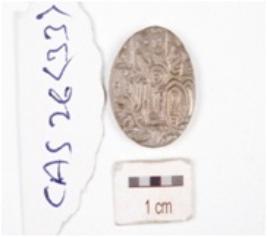 | Description / विवरण | A silver coin, circular in shape having indeterminate motif on both surface. |