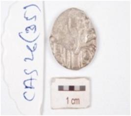 | Description / विवरण | A silver coin, circular in shape having indeterminate motif on both surface. |