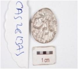 | Description / विवरण | A silver coin, circular in shape having indeterminate motif on both surface. |