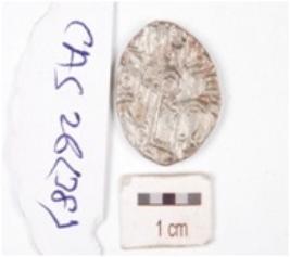 | Description / विवरण | A silver coin, circular in shape having indeterminate motif on both surface. |