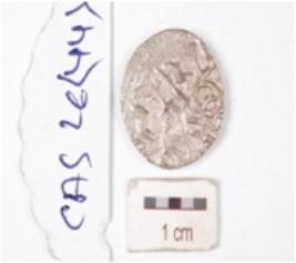 | Description / विवरण | A silver coin, circular in shape having indeterminate motif on both surface. |
