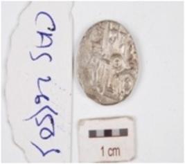 | Description / विवरण | A silver coin, circular in shape having indeterminate motif on both surface. |