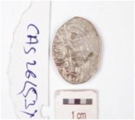 | Description / विवरण | A silver coin, circular in shape, having indeterminate motif on both side surface. |