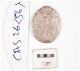 | Description / विवरण | A silver coin, circular in shape having indeterminate motif on both surface. |