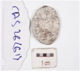 | Description / विवरण | A silver coin, circular in shape having indeterminate, motif on both surface. |