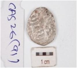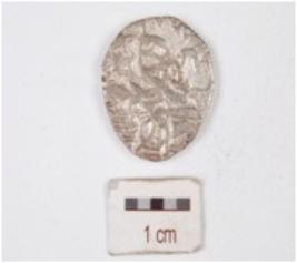 | Description / विवरण | A silver coin, circular in shape having indeterminate motif on both surface. |