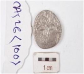 | Description / विवरण | A silver coin, circular in shape having indeterminate motif on both surface. |