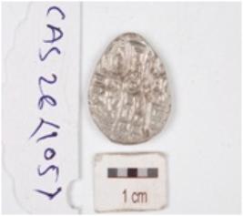 | Description / विवरण | A silver coin, circular in shape having indeterminate motif on both surface. |