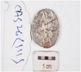 | Description / विवरण | A silver coin, circular in shape having indeterminate motif on both surface. |