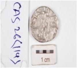 | Description / विवरण | A silver coin, circular in shape having indeterminate motif on both surface. |