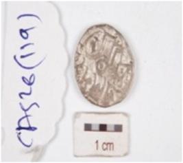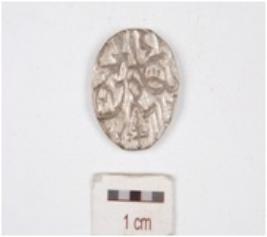 | Description / विवरण | A silver coin, circular in shape, having indeterminate motif on both surface. |