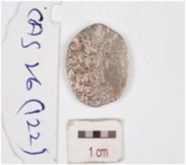 | Description / विवरण | A silver coin, circular in shape, having indeterminate motif on both surface. |
