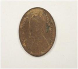 | Description / विवरण | A circular shaped british period coin, in obverse side picture of queen victoria can be seen and one quarter anna is written on riverse side and, its dated 1889, covered with ratina and dust. |