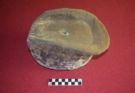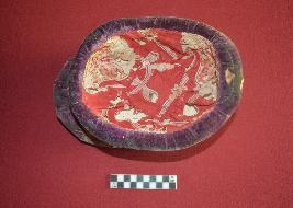 | Description / विवरण | Hat made of cardboard and violet velvet cloth. The valvet and silk layer is almost lost and colour faded. |