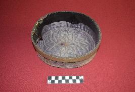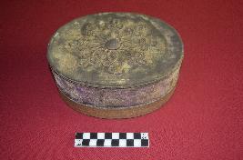 | Description / विवरण | Oval shaped cap made with purple velvet cloth with lace top. |