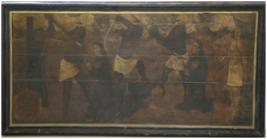 | Description / विवरण | Oil painting on wood, scene showing murder of five fathers on 1694 No VI . School goanese Size 2.95 x 1.50 metre |