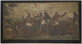 | Description / विवरण | Oil painting on wood, No.III scene showing murder of Francisco Estaven, father holding cross with Jesus, a dog is shown on the right corner of the scene on 1551 A.D. |