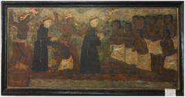 | Description / विवरण | Oil painting on wood, No IV scene depicting murder of two fathers in front of scene desciples with floded hands on 1612 A.D. |
