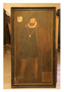 | Description / विवरण | Oil painting on wood, portrait of D.FernandoTelles De Menezes,Governor in 1581 A.D. for 6 months. Restored by goanese Da Costa in 1894 A.D. |