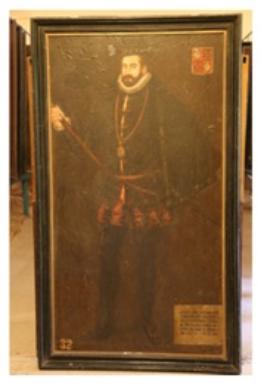 | Description / विवरण | Oil painting on wood, portrait of Matias De Albuquerque Coutinho, Viceroy from 1591 to 1597 A.D. Restored by goanese Da Costa in 1894 A.D. |