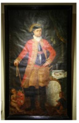 | Description / विवरण | Oil painting on Canvas, portrait of Dom Frederico Guilherme de. Souza , Governor from 1779 to 1786 School goanese Restored by goanes Da Costa in 1894 A.D. Size 2.20 x 1.35 metre |