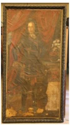 | Description / विवरण | Oil painting on canvas, portrait of D. Luiz De Menezes, Viceroy from 1717 to 1720 A.D. School goanese Restored by goanes Da Costa in 1894 A.D. |