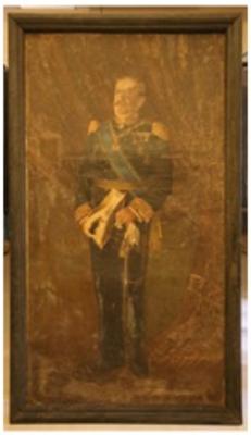 | Description / विवरण | Oil painting on canvas torned portrait of an unknown governor. |