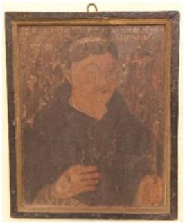 Oil painting on wood, bust of unknown Bishop. |