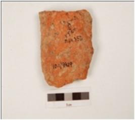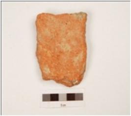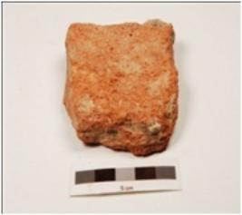 | Description / विवरण | Terracotta skin rubber with a rough surface, rectangular cross section, coarse tempering material used, husk impression on surface visible. |