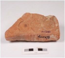 | Description / विवरण | Fragment of a mould made terracotta tile with punch-marked impressions on the surface. |