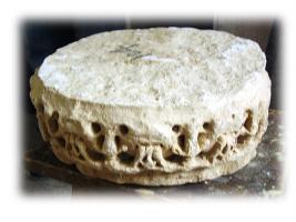 | Description / विवरण | It is upper part of rounded stone with decortaed design at rounded edge and it is reddish in colour |