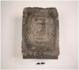 | Description / विवरण | A column base made of basalt, polished surface, square shaped, concave sides, flat base, square depression on upper end to fix the column. |