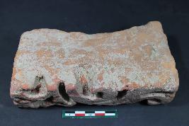 | Description / विवरण | Roughly cuboidal decorated Brick Bat having rough surface. |